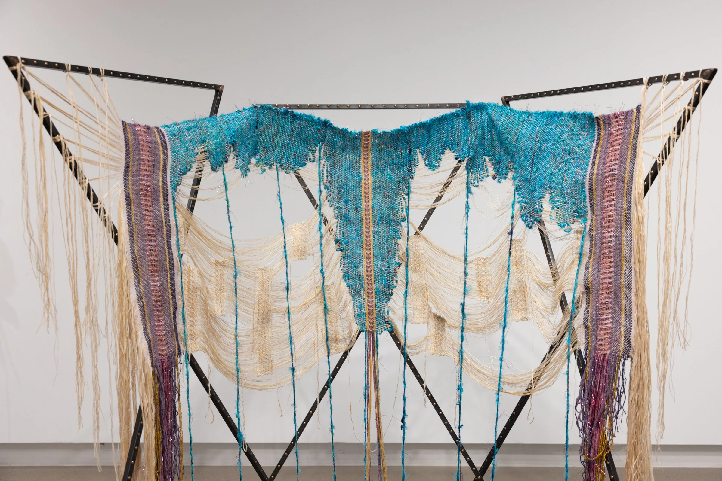 I draw on symbolism from esoteric lore and textural intimacy to lure people towards liberatory desires. Through fibers, steel, clay, and the slippery wonder of mangos, I use ancient technologies and encoded materials as a strategy for subversion.